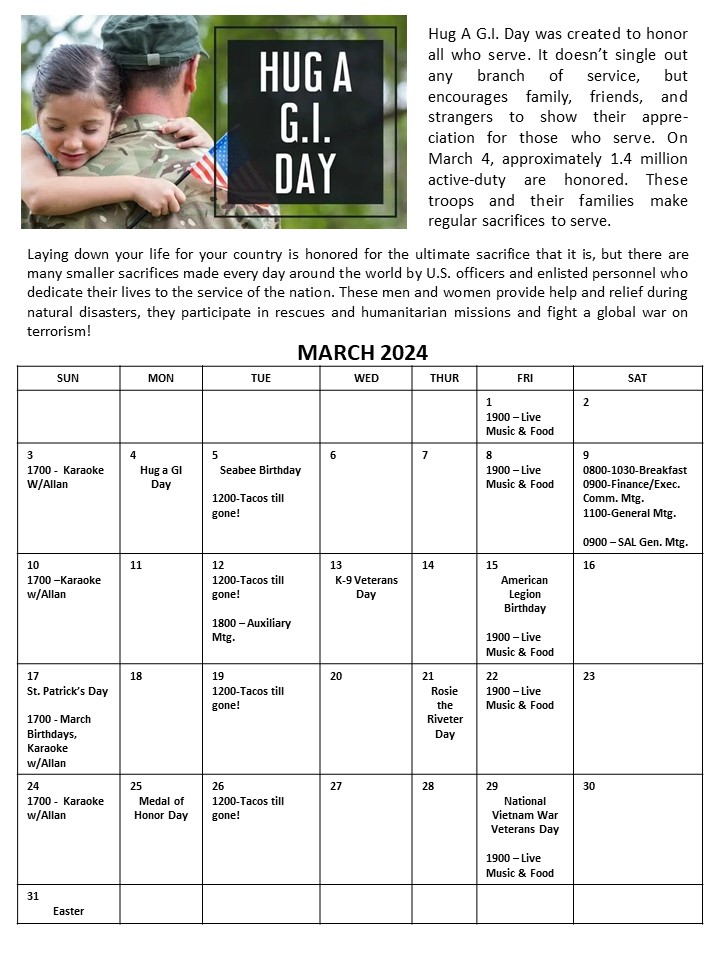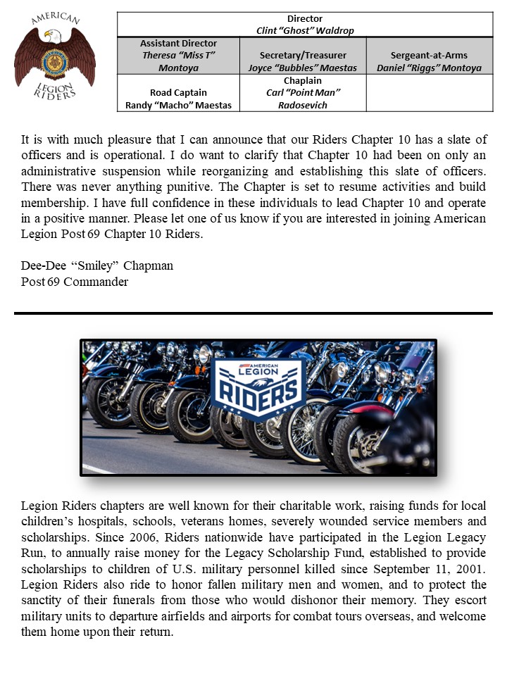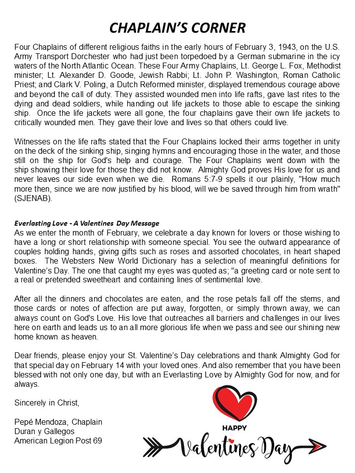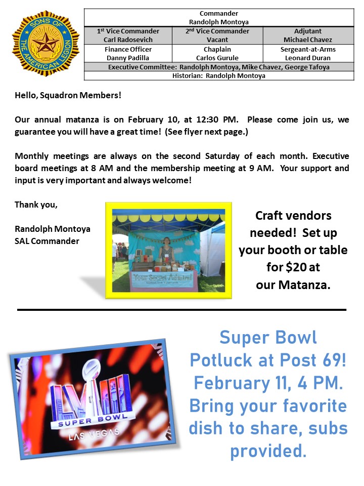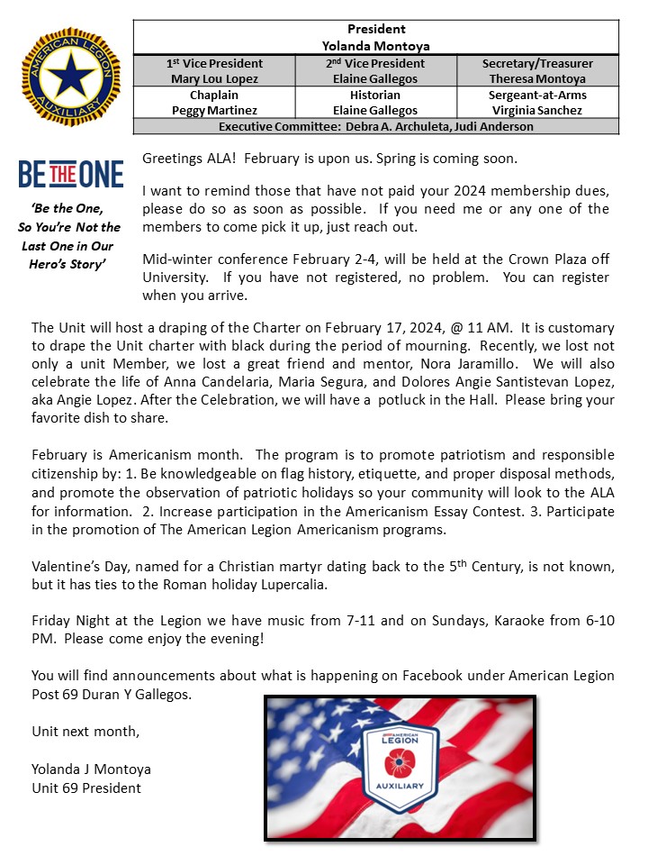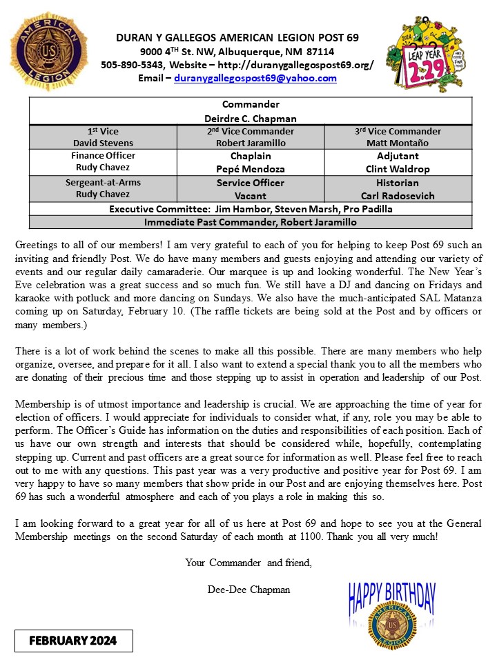 Photo Galleries February 2024 Patriotic Brief Case Post 69 Legion Riders January 2024 Marquee 2024 New Year's Eve Party 2023 February 2024 March 2024 April 2024 Newsletter February 2025 Newsletter April 2023 Newsletter August 2023 Newsletter December 2023 Newsletter Hall Photos July Newsletter June 2023 Newsletter May 2023 Newsletter Misc 2023 Newsletter National Commander's Visit - April November 2023 Newsletter October 2023 Newsletter Post By Laws Post Officers September 2023 Newsletter
