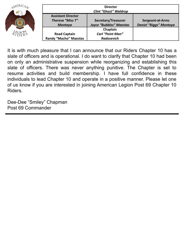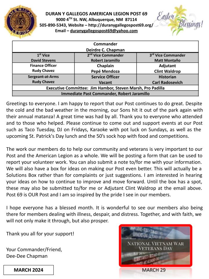 Photo Galleries March 2024 Patriotic Brief Case Post 69 Legion Riders January 2024 Marquee 2024 New Year's Eve Party 2023 February 2024 March 2024 April 2024 Newsletter February 2025 Newsletter April 2023 Newsletter August 2023 Newsletter December 2023 Newsletter Hall Photos July Newsletter June 2023 Newsletter May 2023 Newsletter Misc 2023 Newsletter National Commander's Visit - April November 2023 Newsletter October 2023 Newsletter Post By Laws Post Officers September 2023 Newsletter